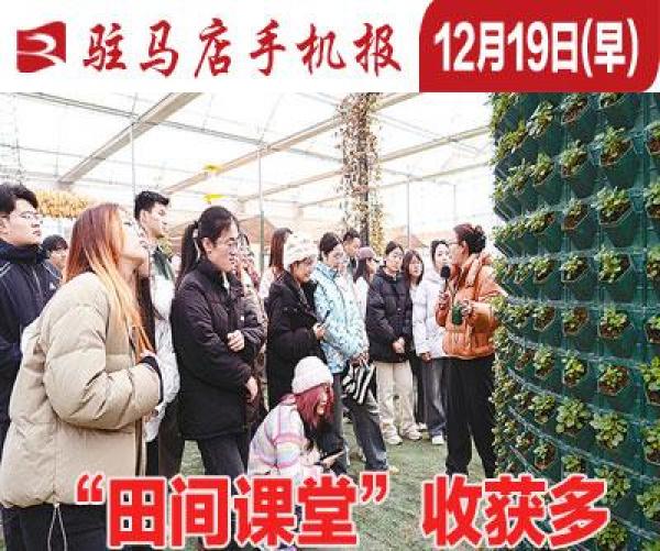 近日,黄淮学院生物取食物工程学院组织学生到驻马店天中生态农业园区开展专业认知实践勾当。50多名黄淮学子走出讲堂,一场“科技+农业”的实践摸索之旅,让专业理论正在田间地头落地生根。(记者 张遥驼 通信员 杜坤)17日,驿城区“十四五”期间经济社会成长总体环境旧事发布会正在驿城区新时代文明实践核心召开。驿城区成长委次要担任同志引见了“十四五”期间全区经济社会成长取得的成绩。我们的专属校车来啦!驻马店市乐山商场北门公交坐,七年级学生郭昫阳背着书包,和小伙伴们兴奋地朝着驶来的公交车挥手。这辆贴着“通学专线”标识的定制公交车,将稳稳地驶向他就读的驻马店市第四中学练江校区。(详见)(河南日报记者 刁良梓 驻马店日报记者 郭建光)18日,市委副、委王玲到驿城区调研综治核心规范化扶植、沉点人群办事办理等工做,强调要深切进修贯彻党的二十届四中全会,认实落实省委十一届十次全会摆设,结实推进综治核心规范化扶植,深切开展矛盾胶葛集中排查化解,做实做细沉点人群办事办理,全力岁暮岁尾全市社会大局平安不变。(详见)(记者 殷瑞杰)18日,市委常委、宣传部部长宋庆林来到驻马店长儿师范高档专科学校秀山校区,以《自傲自强正在取伟大时代同频共振中放飞芳华胡想》为题,为师生们上了一堂从题明显、内涵深刻的专题思政课。(详见)(记者 张新义)
